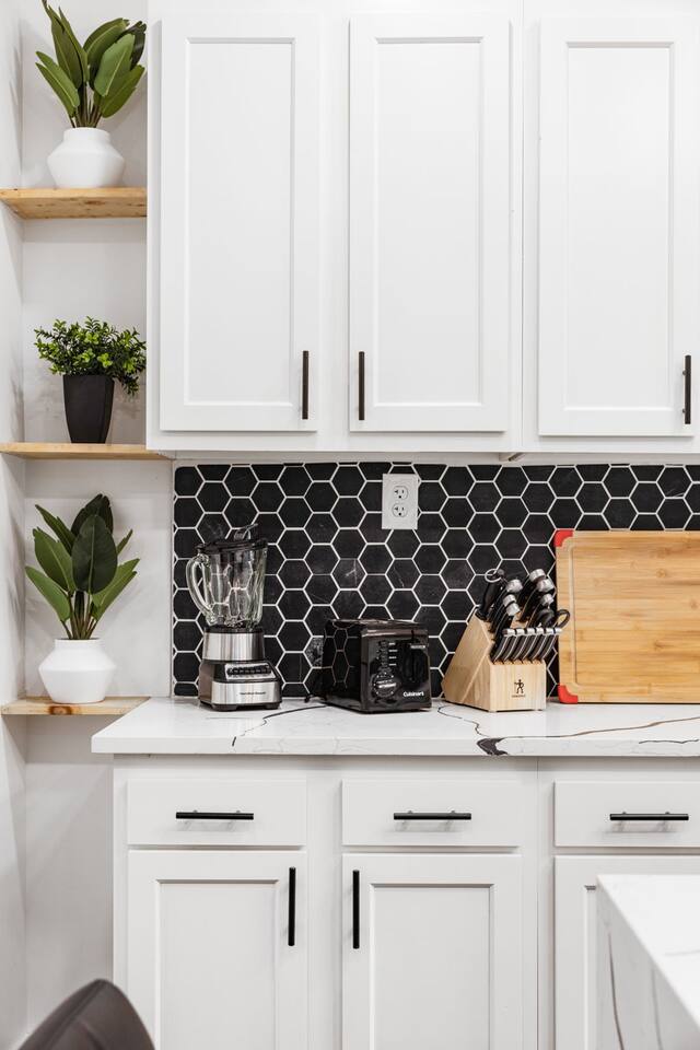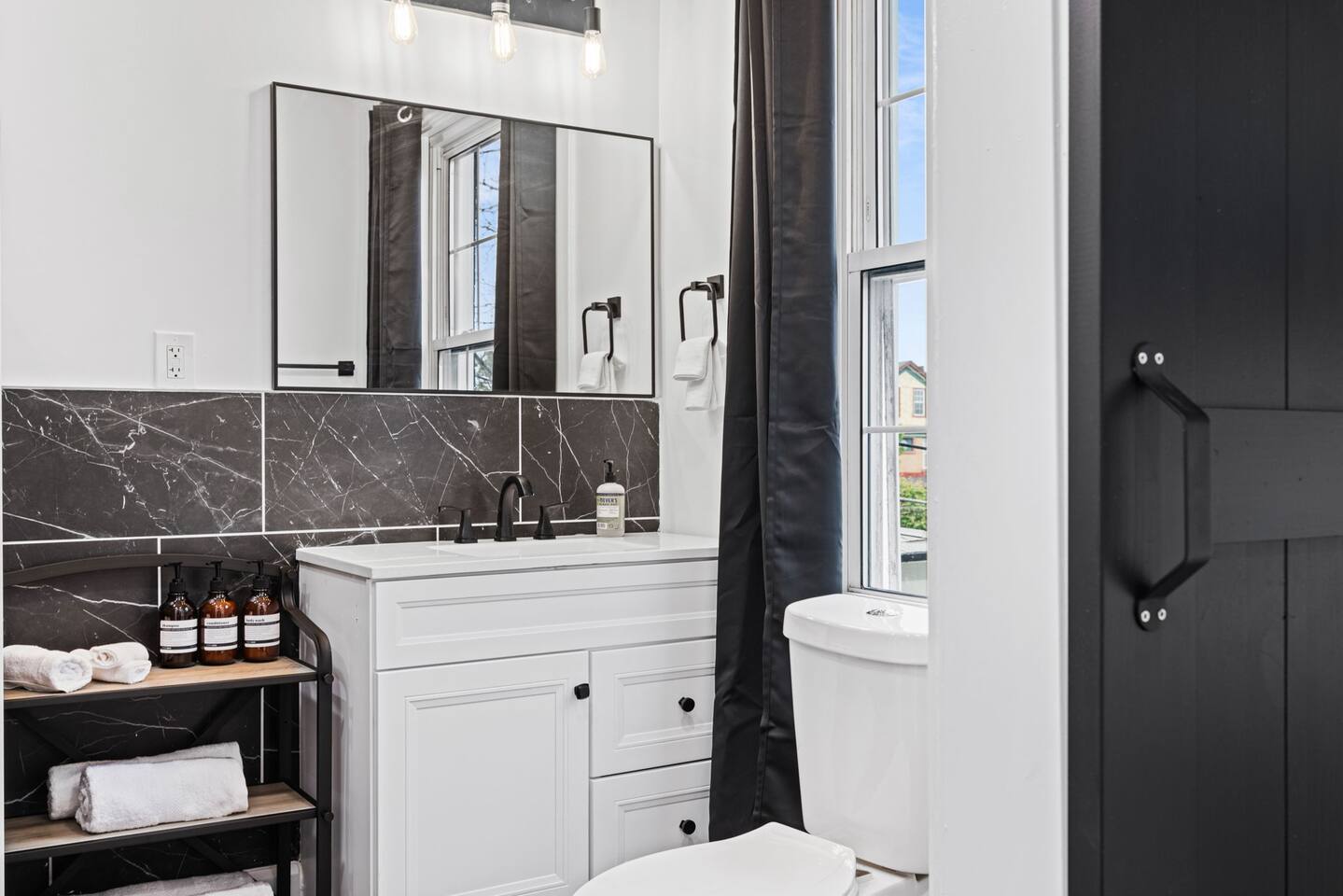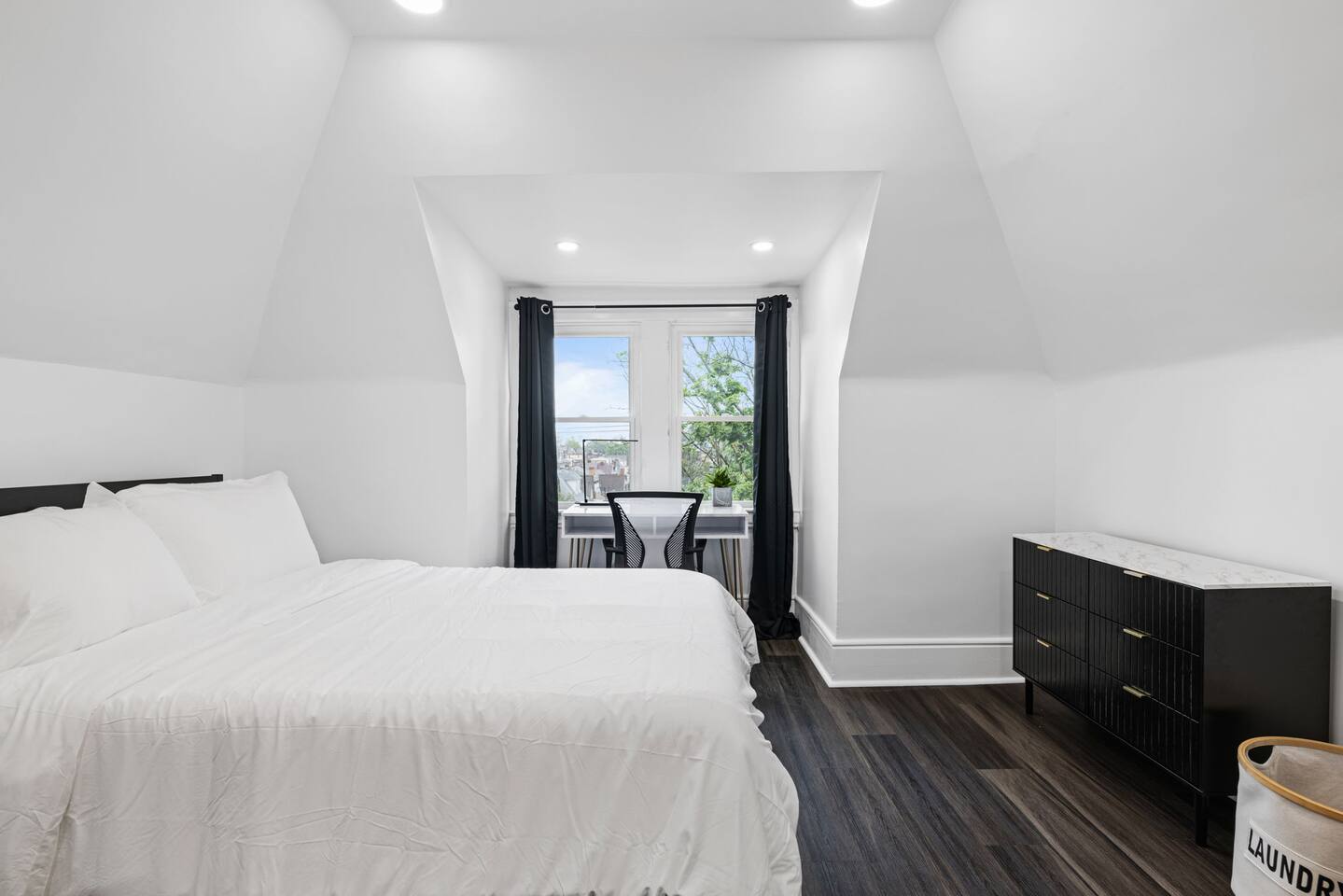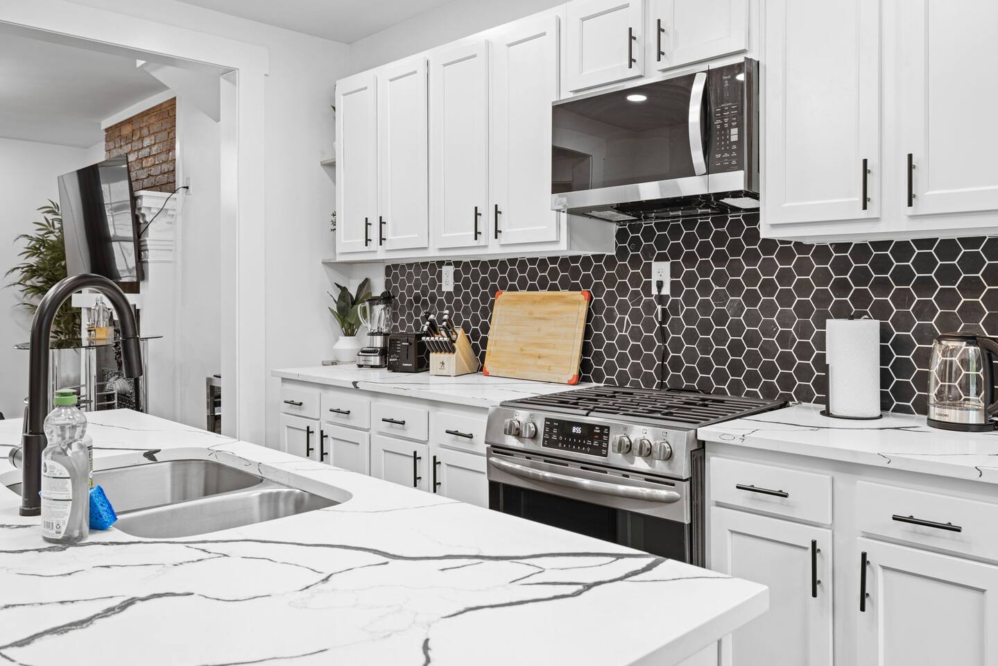 Our home features a spacious living room with comfortable seating from Crate & Barrel, perfect for curling up with a good book or relaxing with friends and family. The fully equipped kitchen with a stunning island and Quartz countertop is perfect for cooking delicious meals and is stocked with all the appliances and cookware you need to make yourself at home. On the second floor, there are 2 bedrooms with queens beds. Both of these bedrooms have admirable on-suite full baths! The third floor has 2 bedrooms with queens beds and a bath for them to share is on the second floor. Our house is the ideal setting for your family to stay!