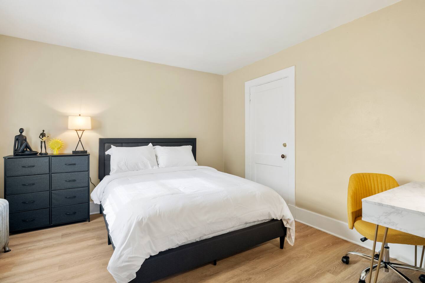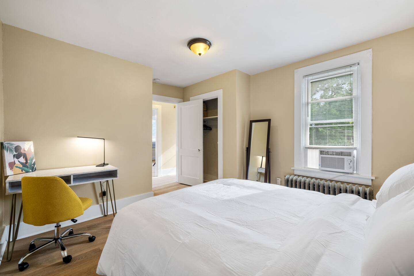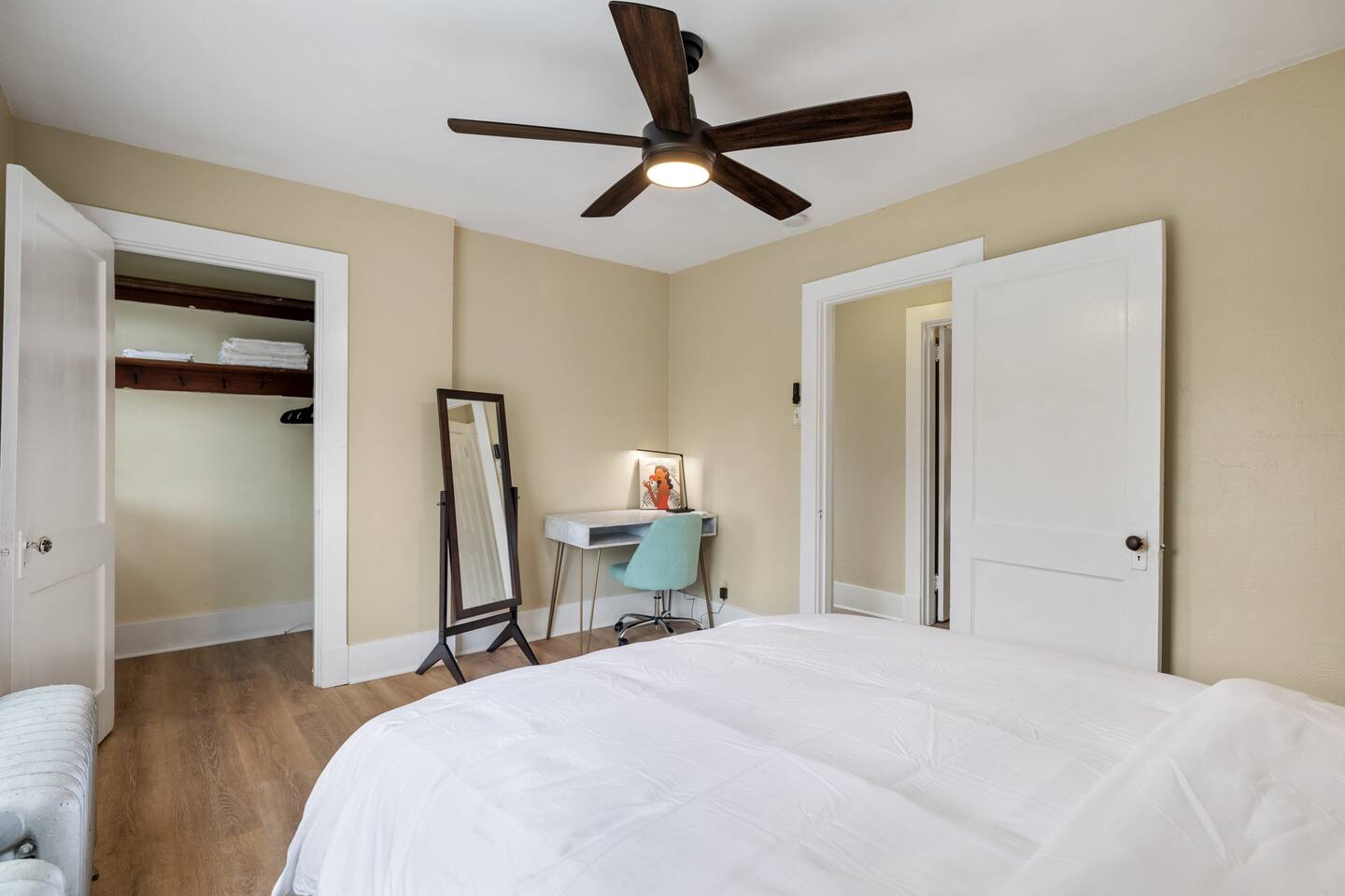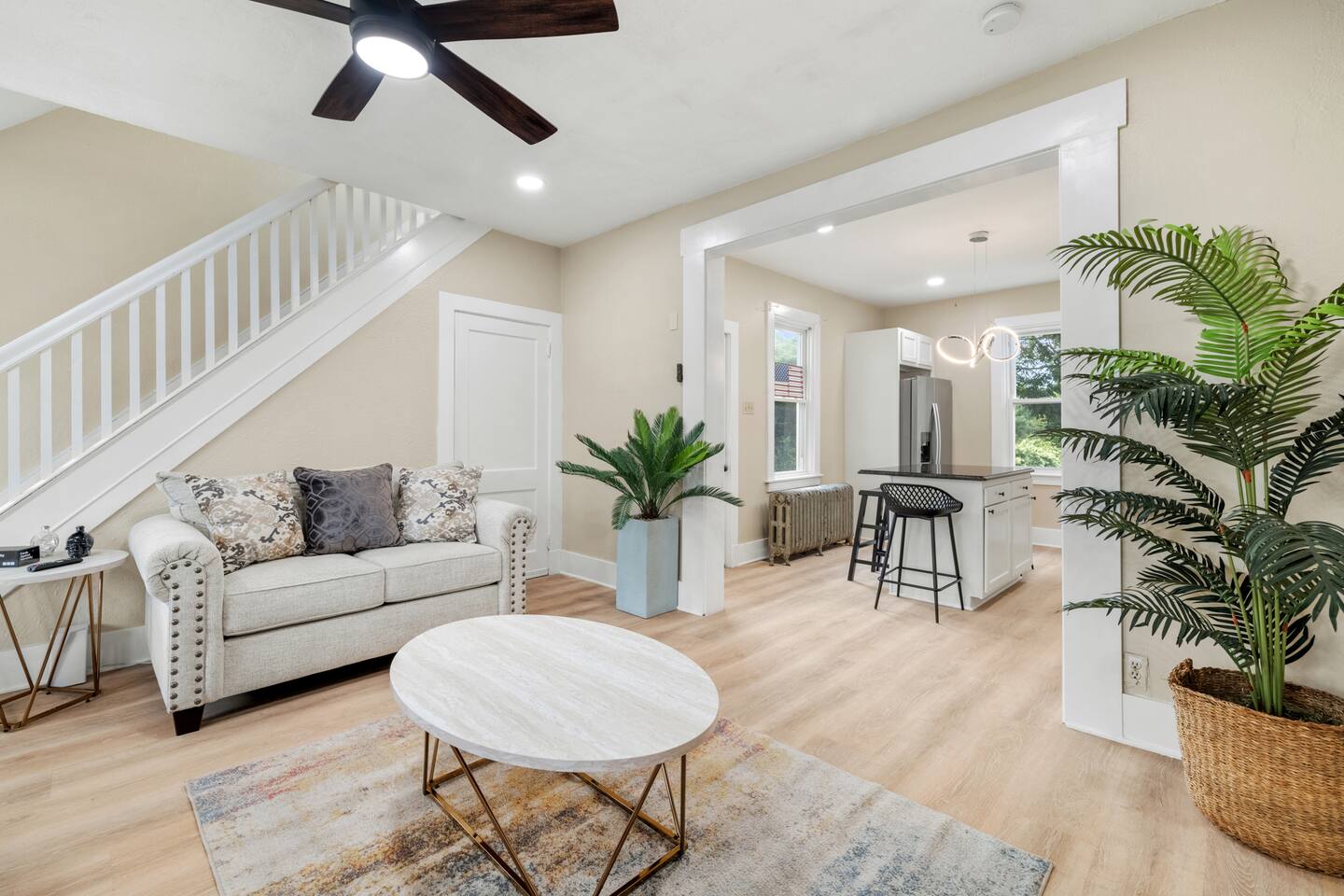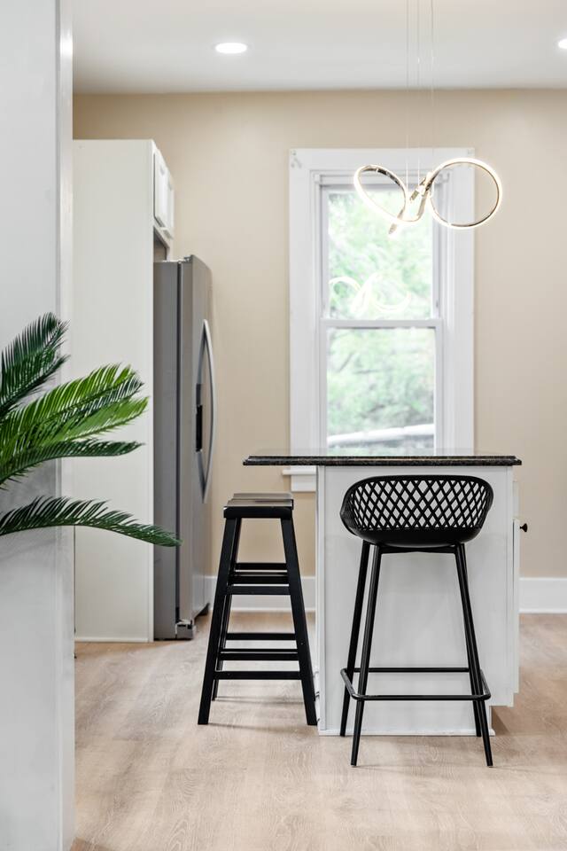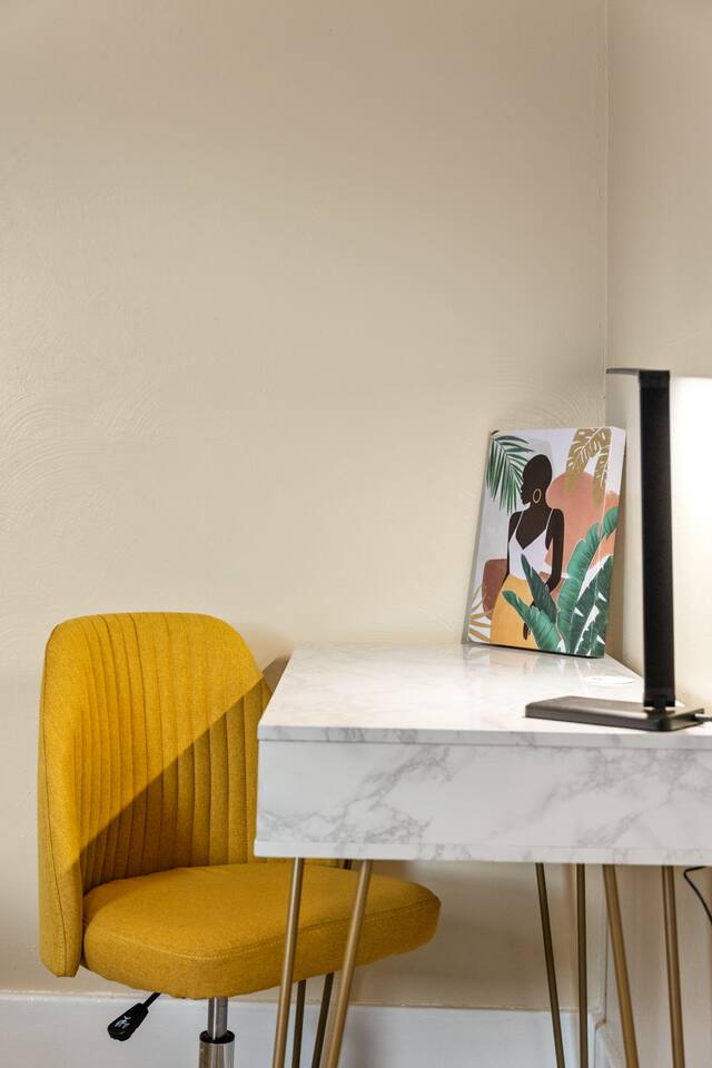 With two cozy queen beds, a fully equipped kitchen with a keurig, utensils, and cooking supplies, and lots of closet space and seating in the living room, our duplex is the perfect place to unwind after a day in the city. However, note that the first full bathroom is on the second floor, and the second full bathroom is in the basement. It's our joy to make your stay comfortable and memorable!