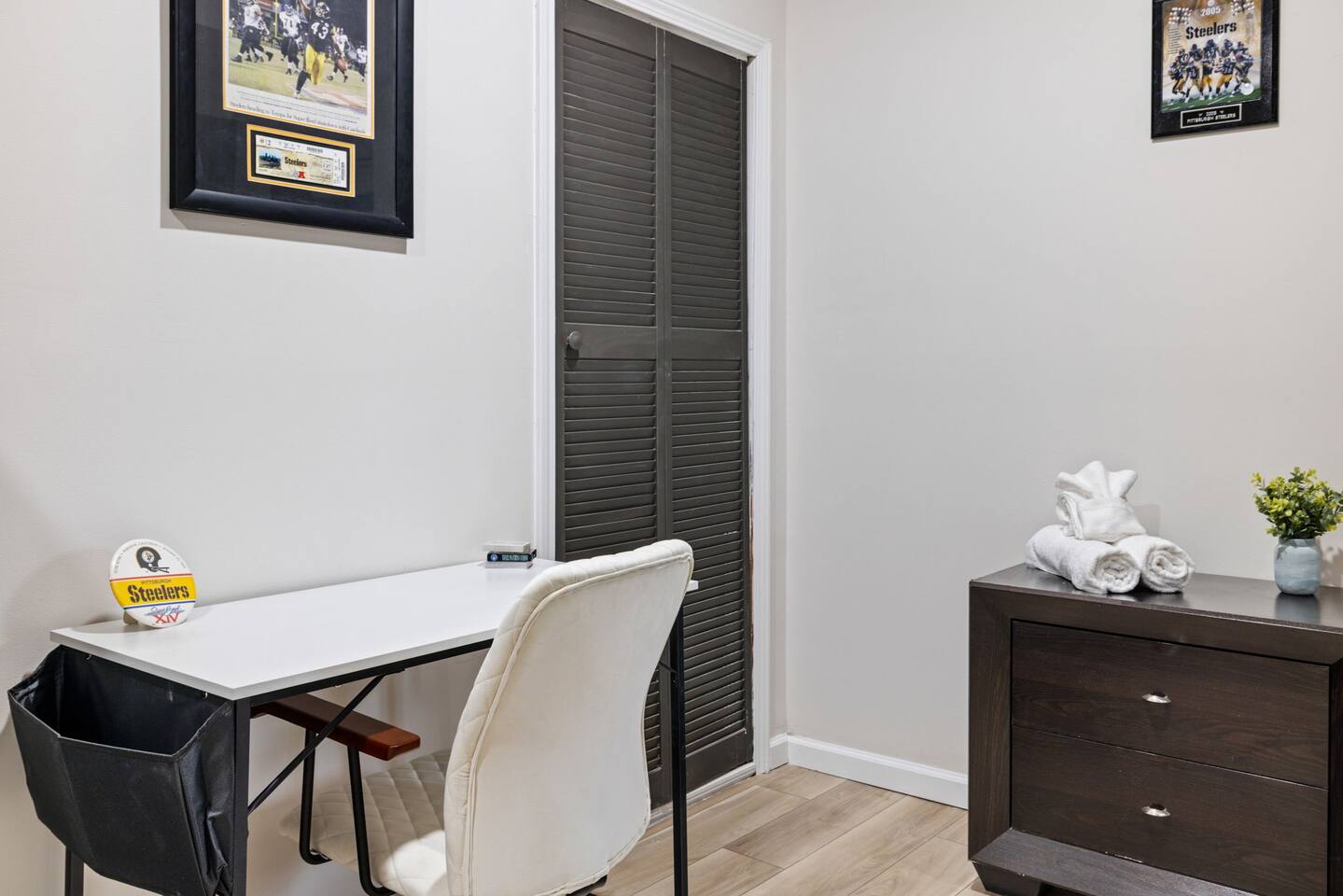 We unfortunately do not allow children or infants in our home because it is a shared space and other guests use the home. Keep your room key on you at all times! If you lose the key or forget to return it, there is a $50 fee for getting a replacement key! A cleaning fee of $100 per month applies to all guests staying one month or longer to ensure the common areas are kept clean and comfortable throughout your stay. Please note that parking is limited. We kindly ask guests to park on the gravel area, which can fit one car. Please do not block the driveways of any other homes. Thank you for your understanding and cooperation! Please Note: Each guest is permitted to park one vehicle only. * IMPORTANT NOTE * - We do have noise monitoring software in our home, which solely tracks noise levels to prevent large parties in our home. We have a strict no parties or events house rule. Check-in is at 4 PM. Check-out is at 10 AM. If you would like to request early or late check in or out, please be advised there is a fee associated for either. Please message us, and we can coordinate with you on this! ALSO NOTE: This room is located on the basement floor of the home and tend to be naturally cooler than the rest of the house during the winter months. If you would prefer a warmer room on a higher floor, please let us know and we would be happy to offer you that alternative.