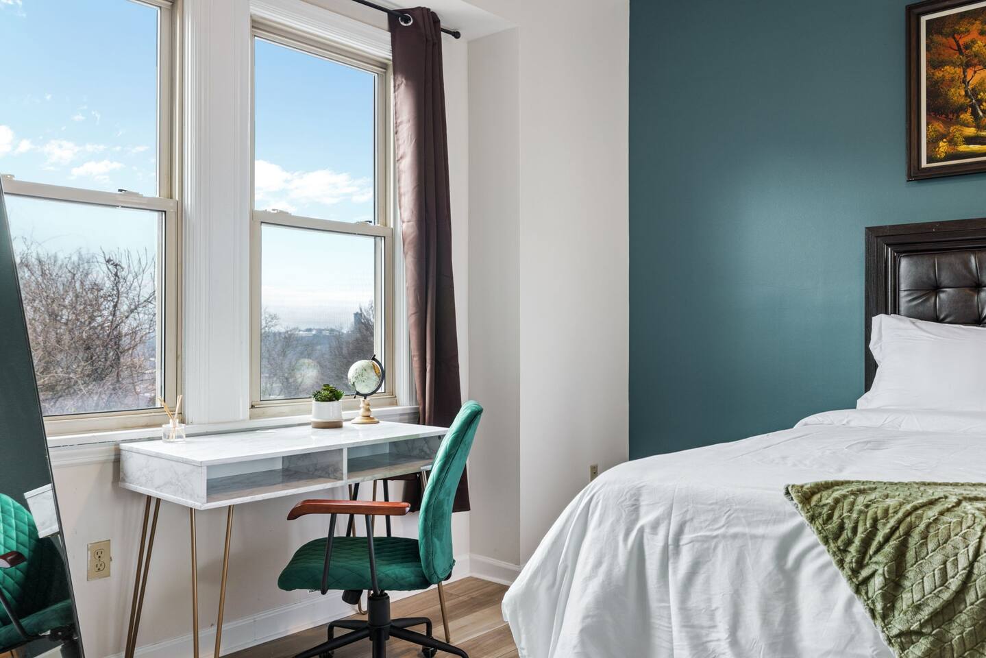 This welcoming room is designed to ensure your comfort. Experience a peaceful night's sleep on a luxurious bed with soft linens, and wake up to ample natural light streaming through the windows. For your convenience, the room includes modern amenities like a work desk and ample storage space for your belongings. This room is private! You have access to shared spaces in our home, such as the stylish bathroom, cozy living room, and well-equipped kitchen. Enjoy the convenience of cooking in the kitchen or relaxing in the comfortable living room. This room isn't just accommodation; it's an integral part of your travel experience. We look forward to hosting you and ensuring your stay is enjoyable and memorable! Please note that our property is a shared space, which means there may be other guests staying in the house during your visit. You'll have a private room, but common areas such as the kitchen, living room, and bathroom are shared with others.
